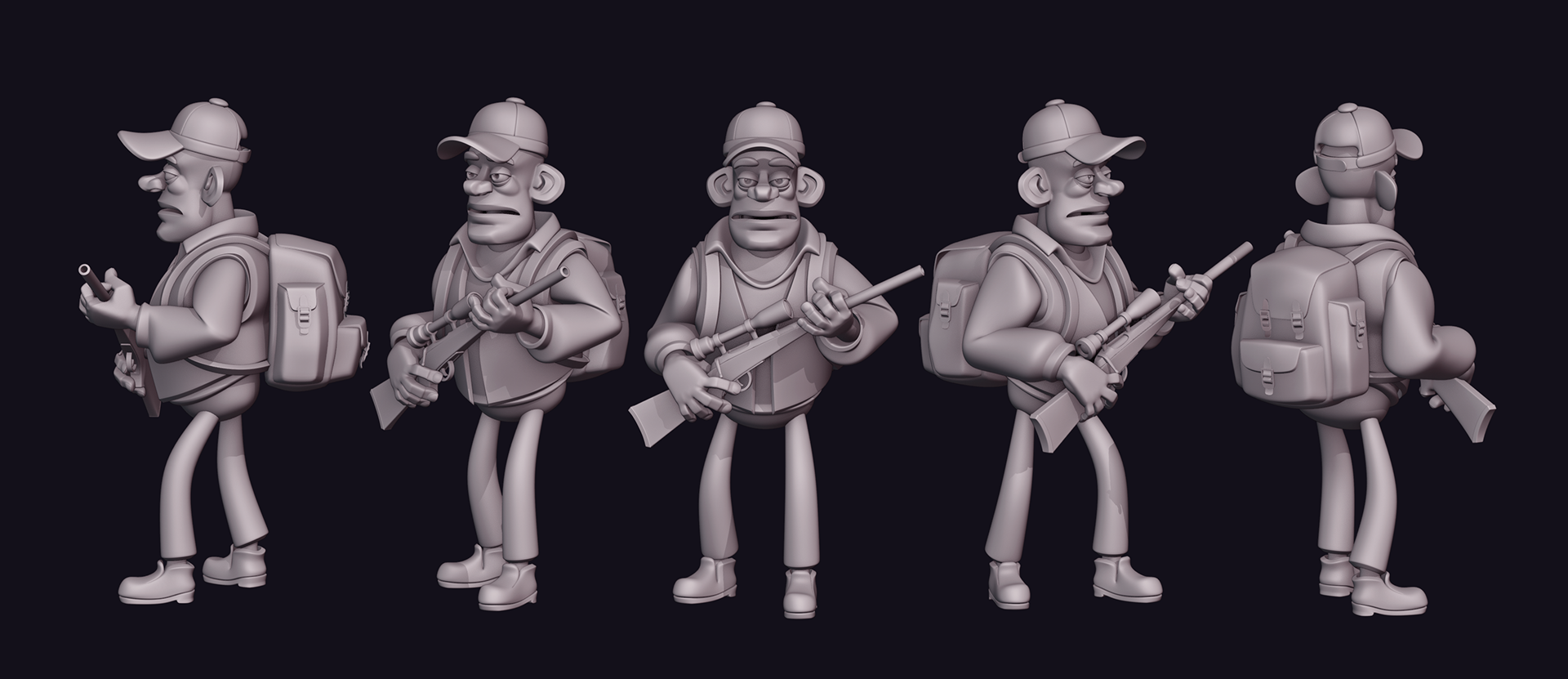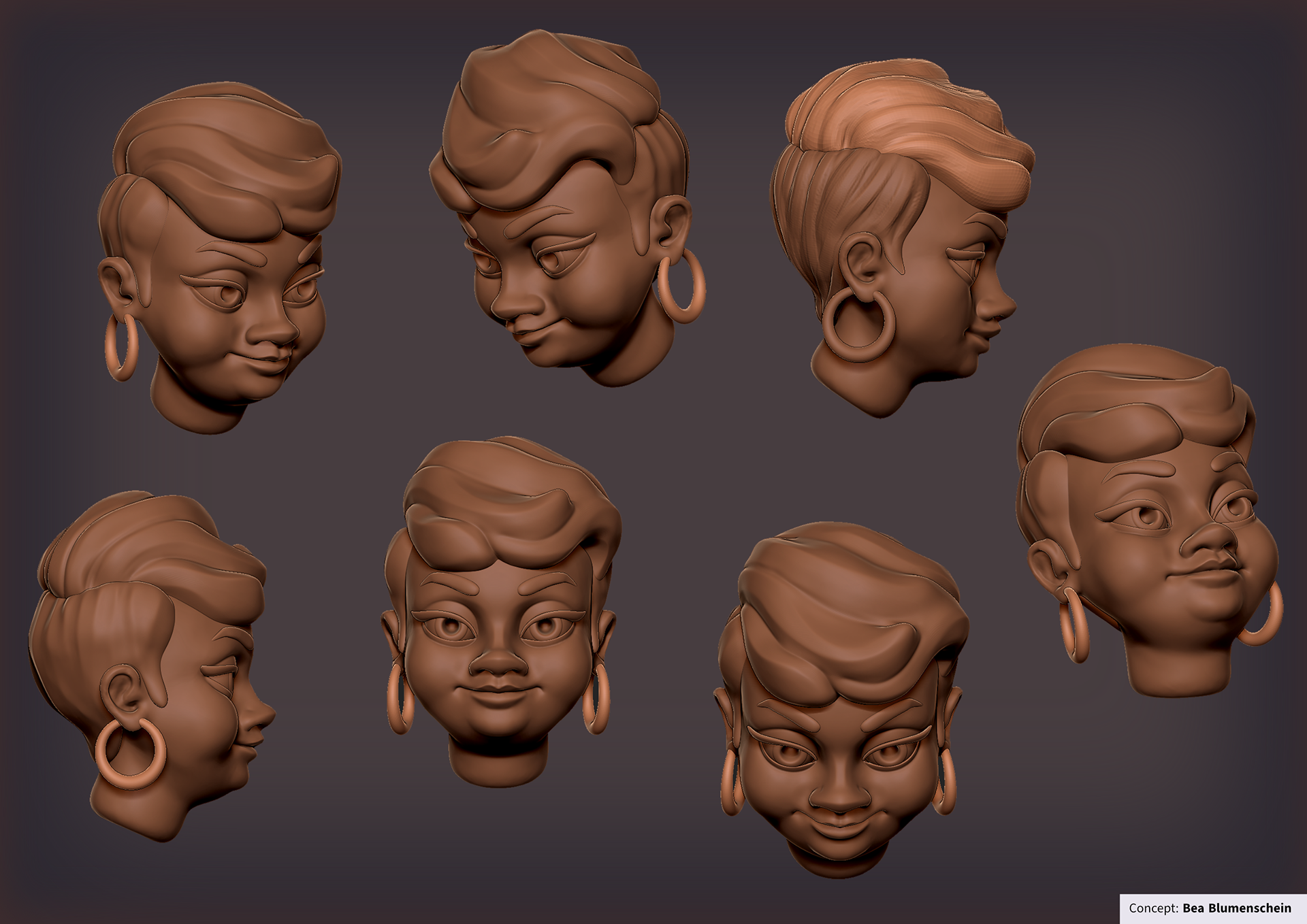 stylized 3d character MODELS BASED ON BEA BLUMENSCHEIN'S 2D CONCEPTS, sculpted in PIXOLOGIC ZBRUSH.