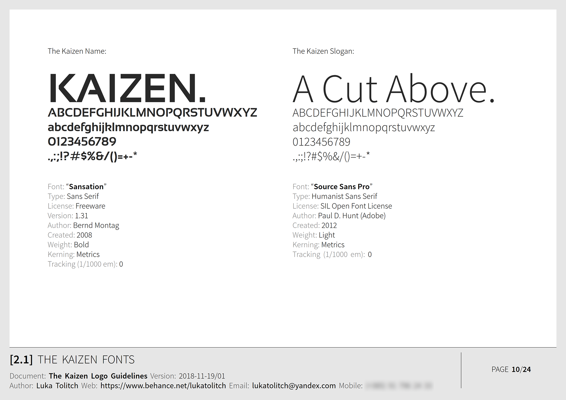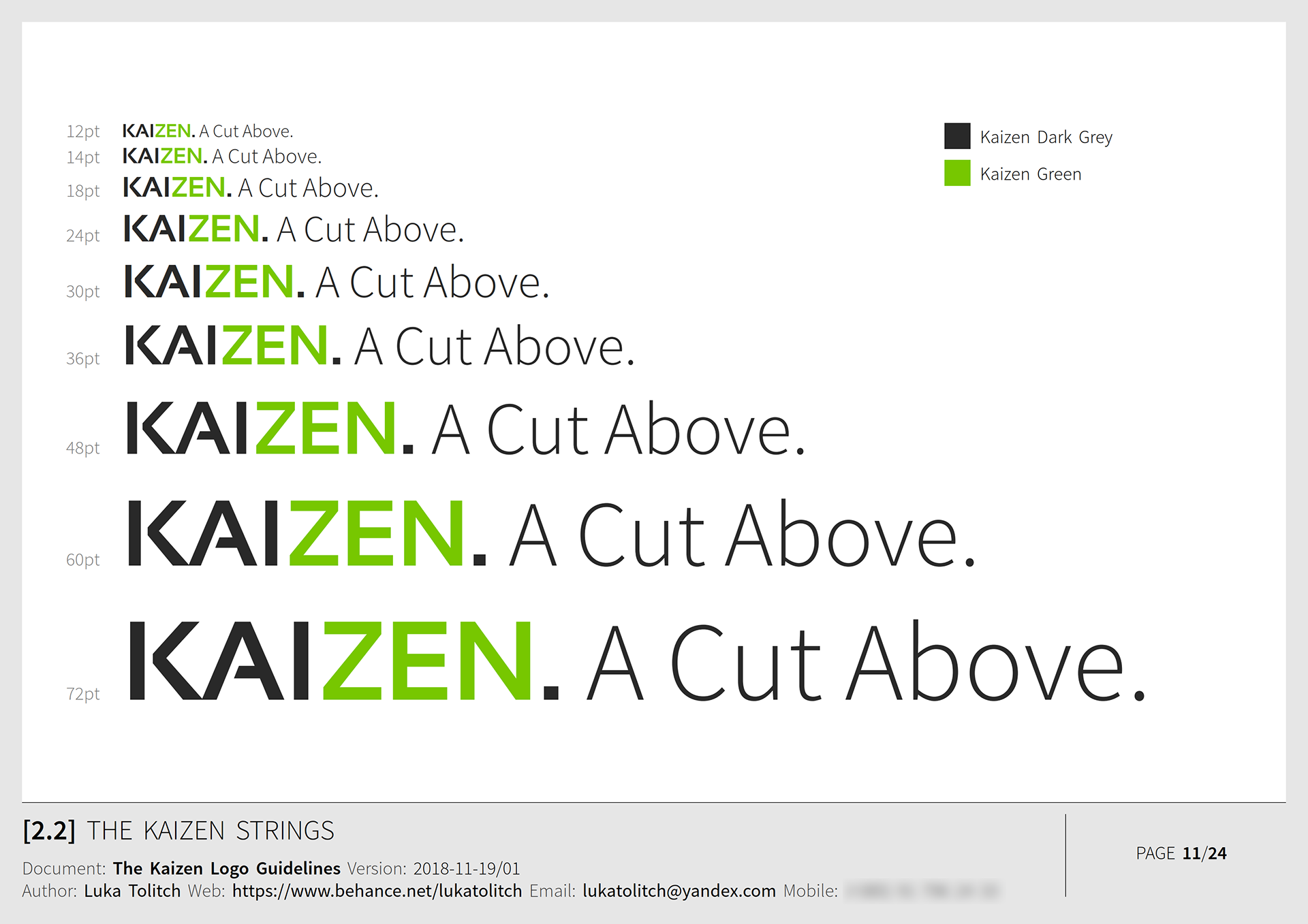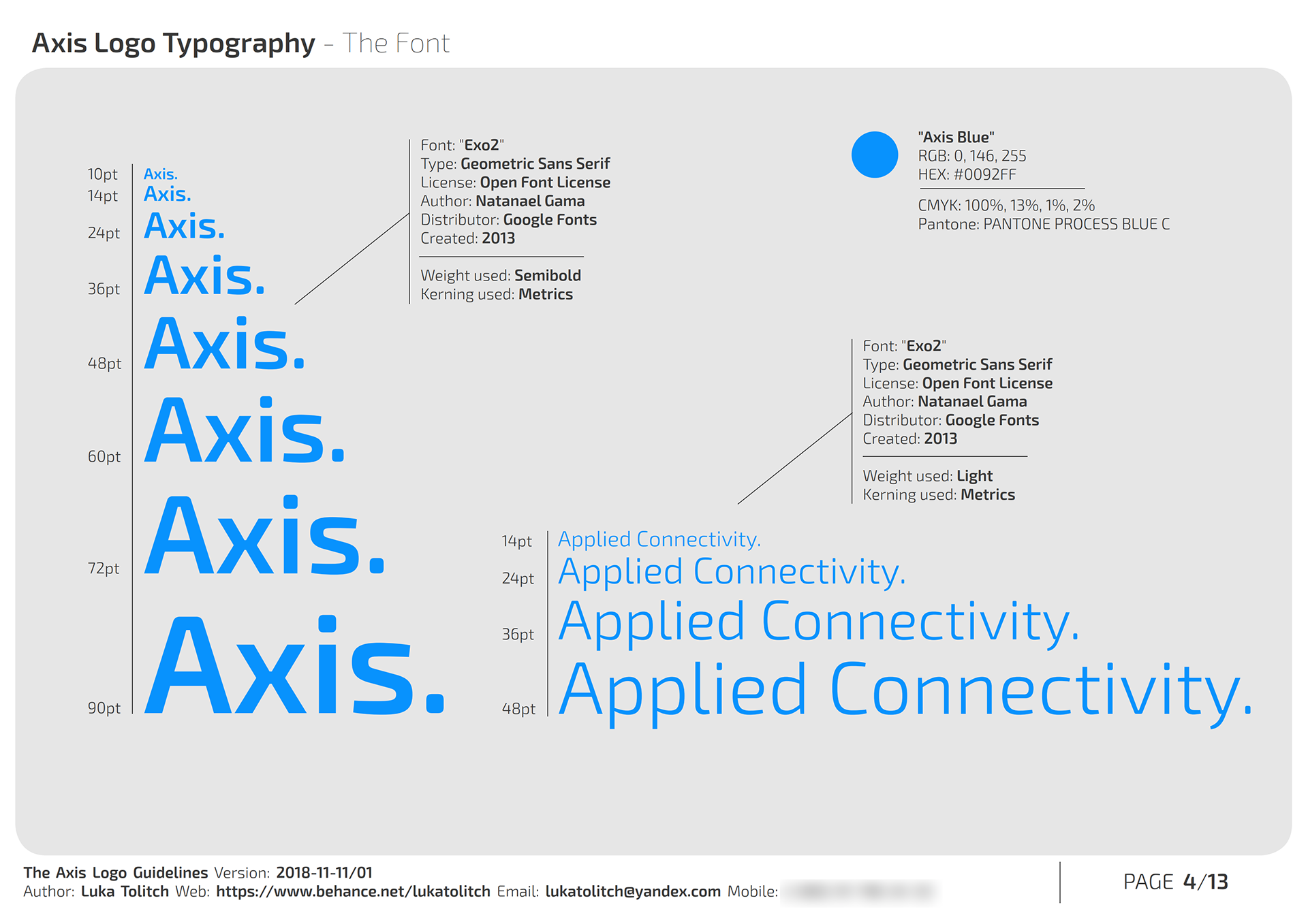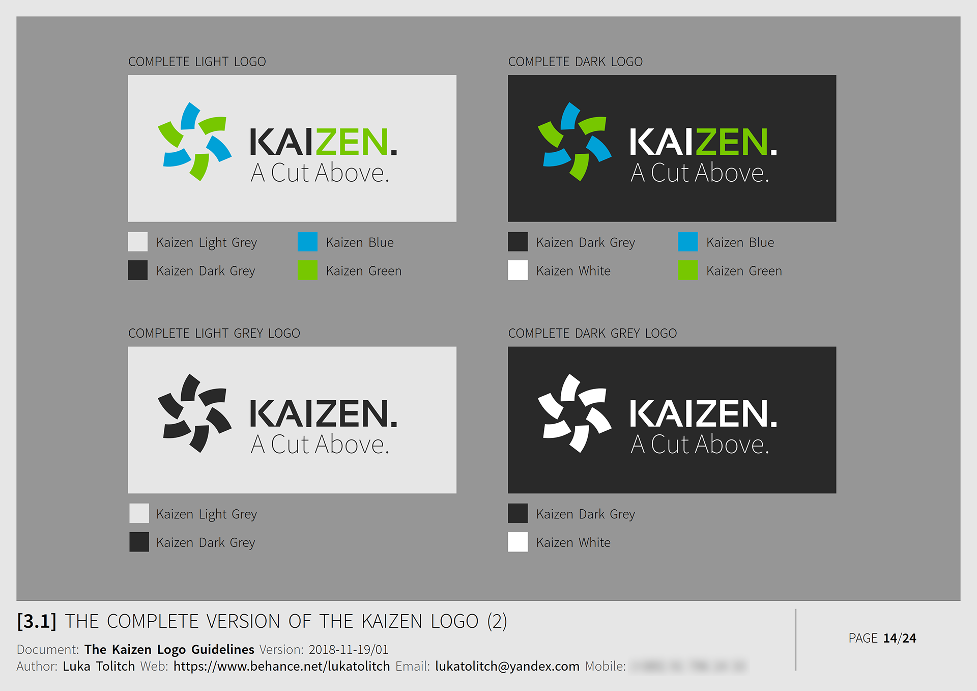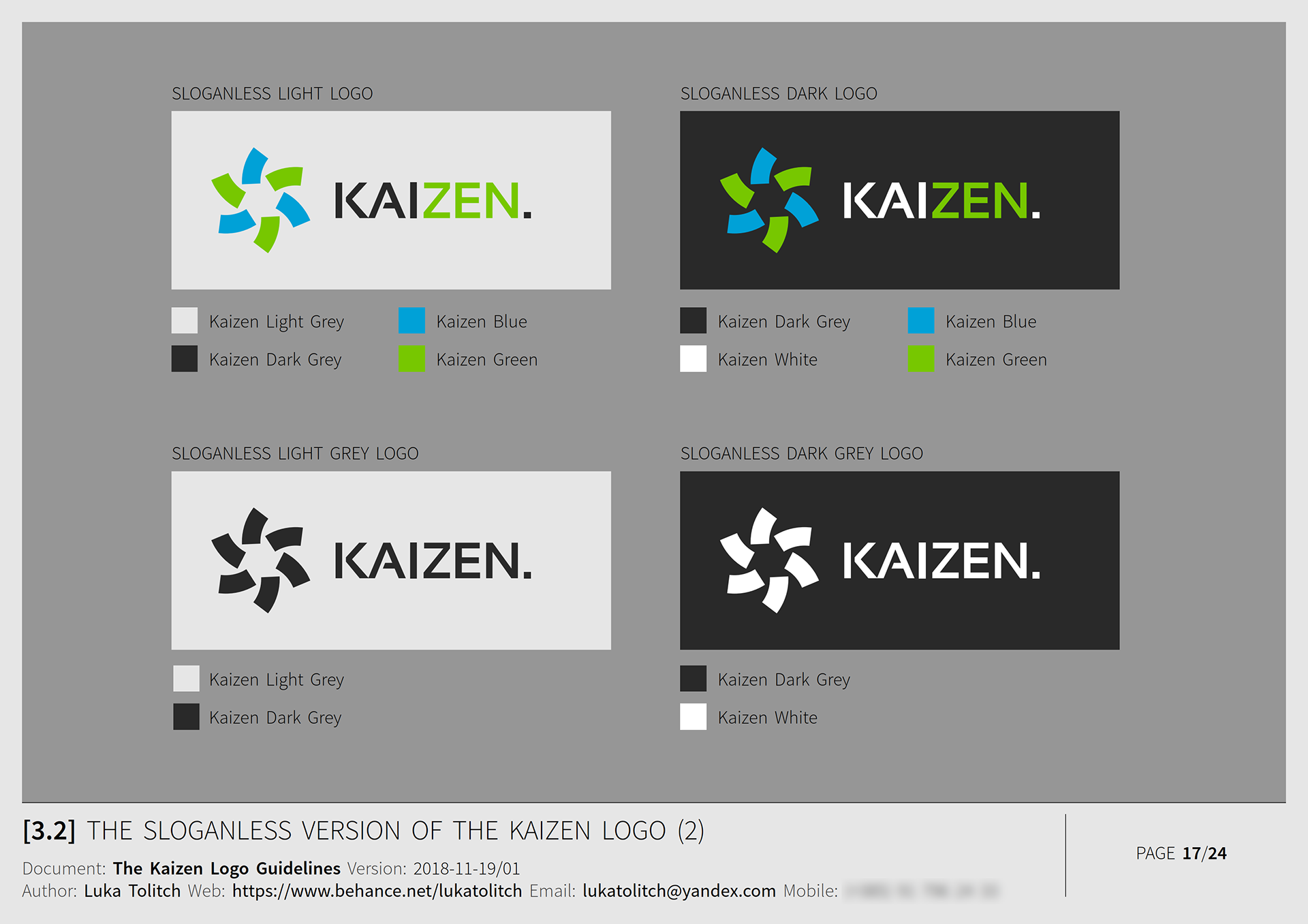 The materials presented here are from the Logo Guidelines document I created for the client.