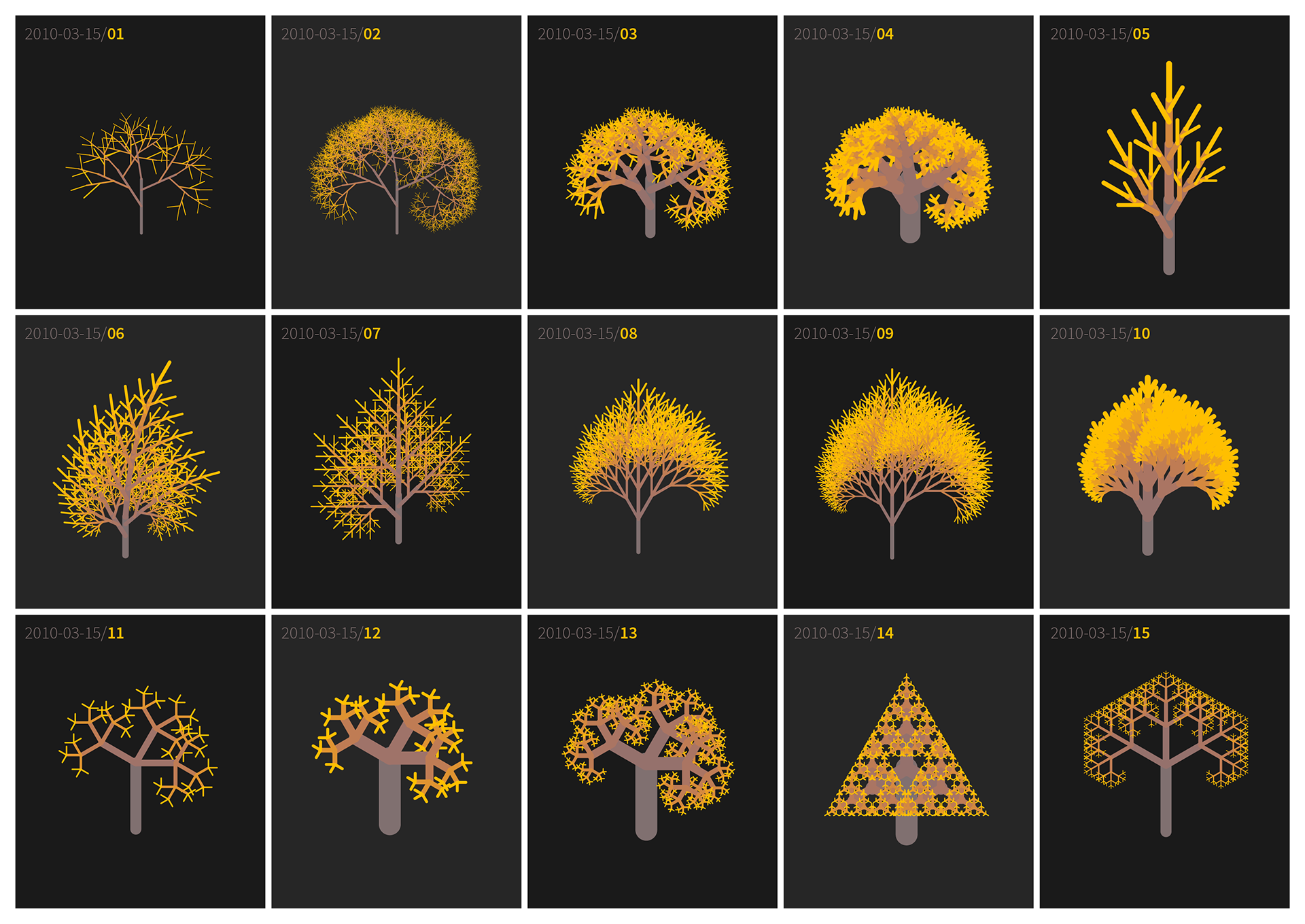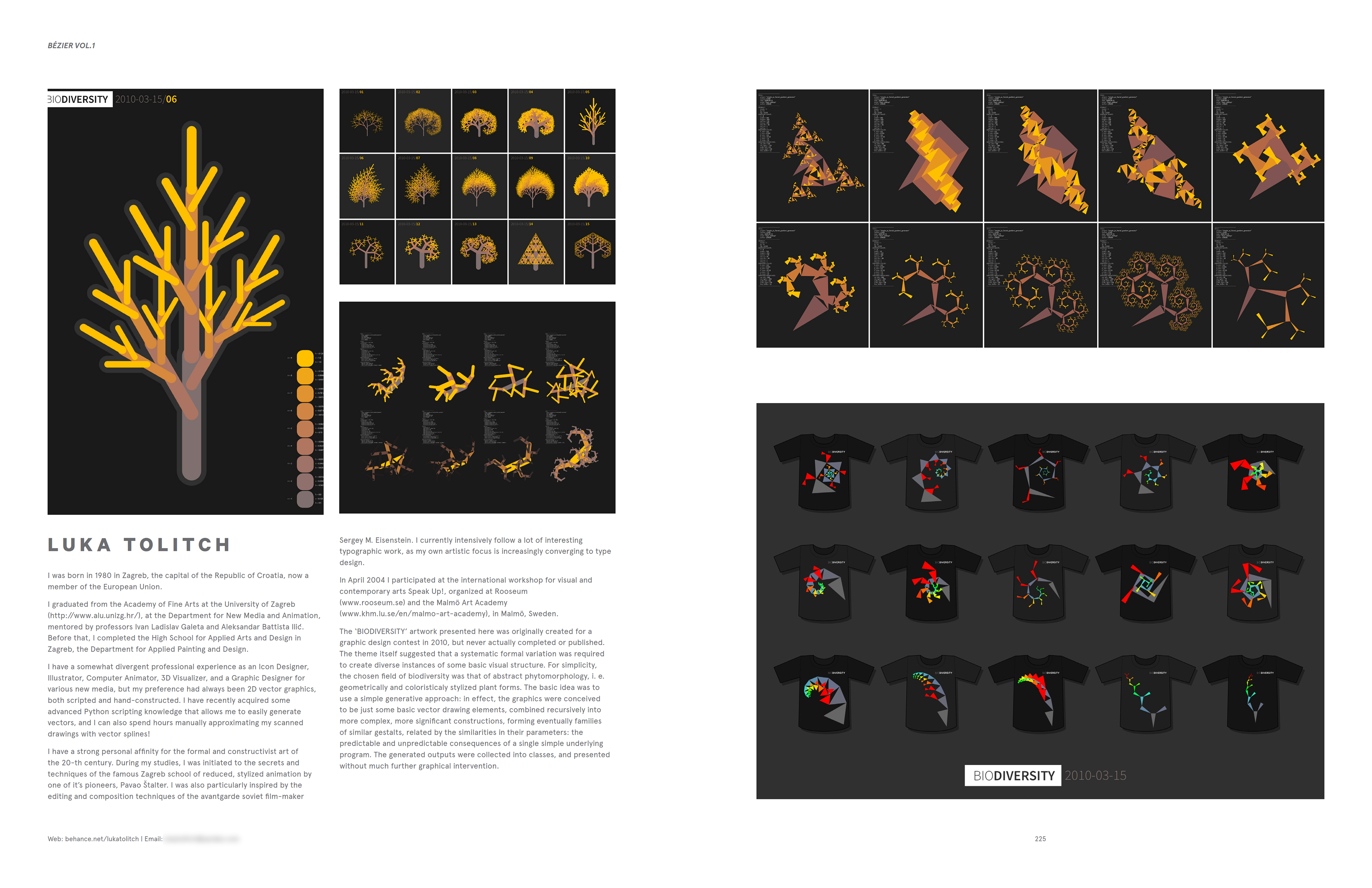 It was originally created for the Croatian ‘Year of Biodiversity’ graphic design contest back in 2010, but it was not completed nor published at that time. The basic idea was to use a simple generative approach: the graphics were conceived to be just some basic vector drawing elements, combined recursively into more complex, more significant constructions, forming eventually the families of similar 'Gestalts', related by the similarities in their parameters - the predictable and unpredictable consequences of a single simple underlying program. It's now Hosted on GitHub, a Postscript open-source project. Although never completed, this old work was published in 2017 in the book "Bézier Vol.1: The Best Vector Artists Worldwide" by Crooks Press (now Capsules Books), Melbourne.