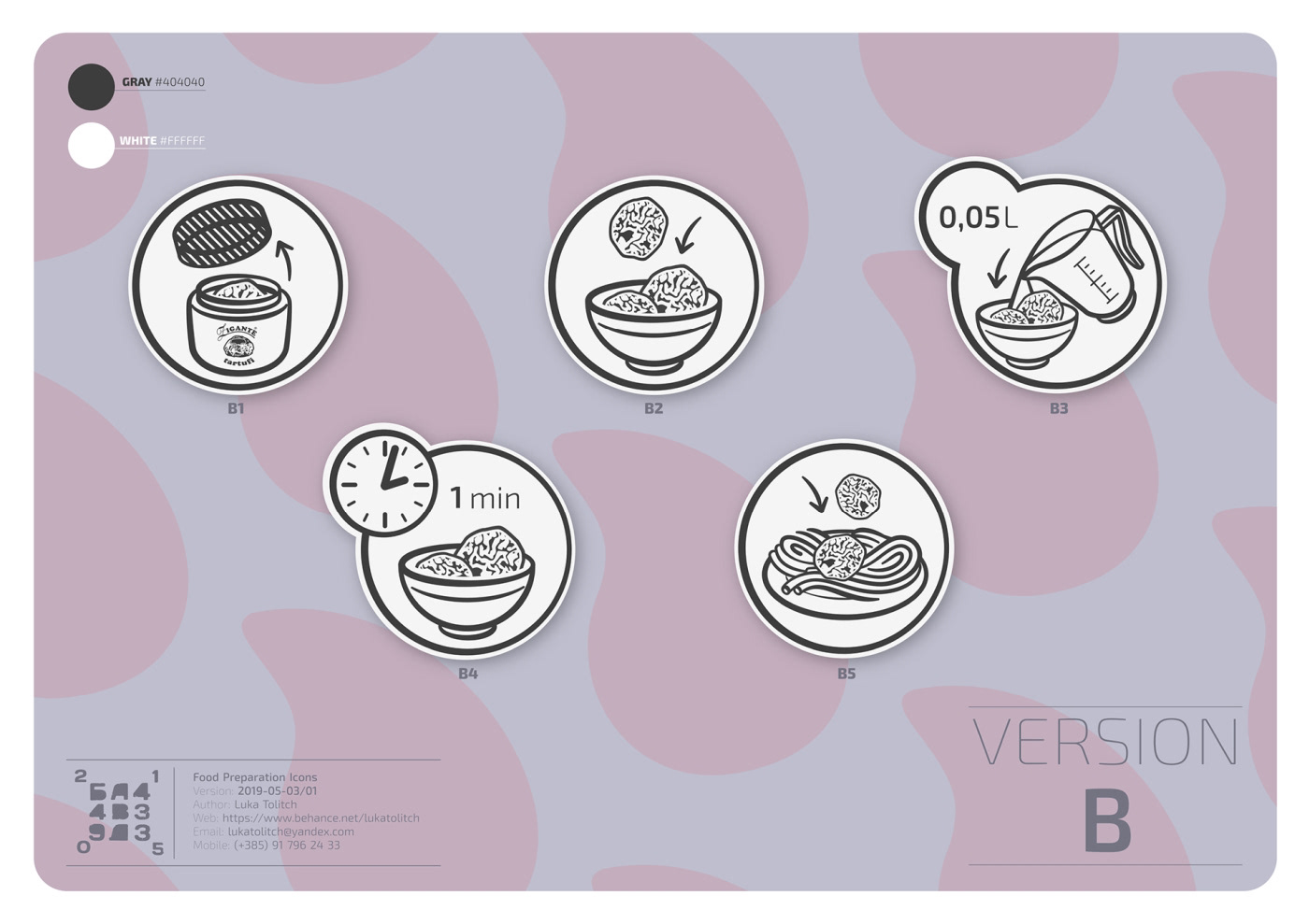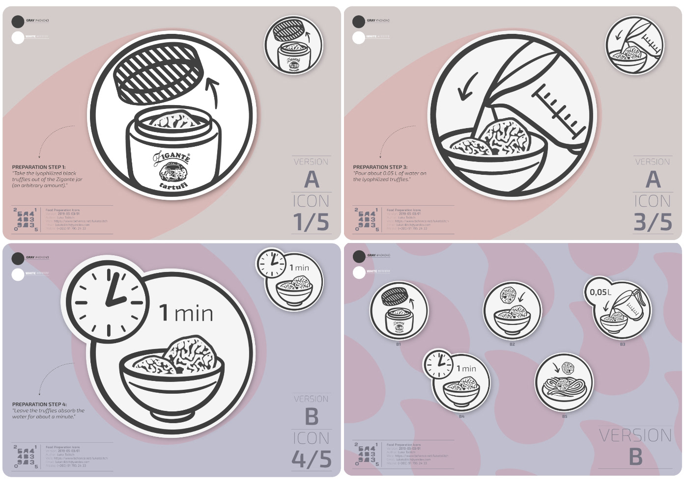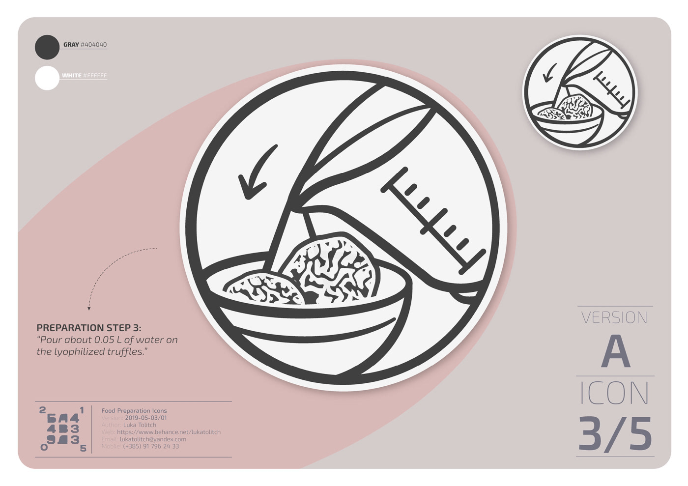 A set of five food preparation 2D vector icons made for Studio Web Art for a client that specializes in production of lyophilized truffles. The icons were used for the client’s product packaging.