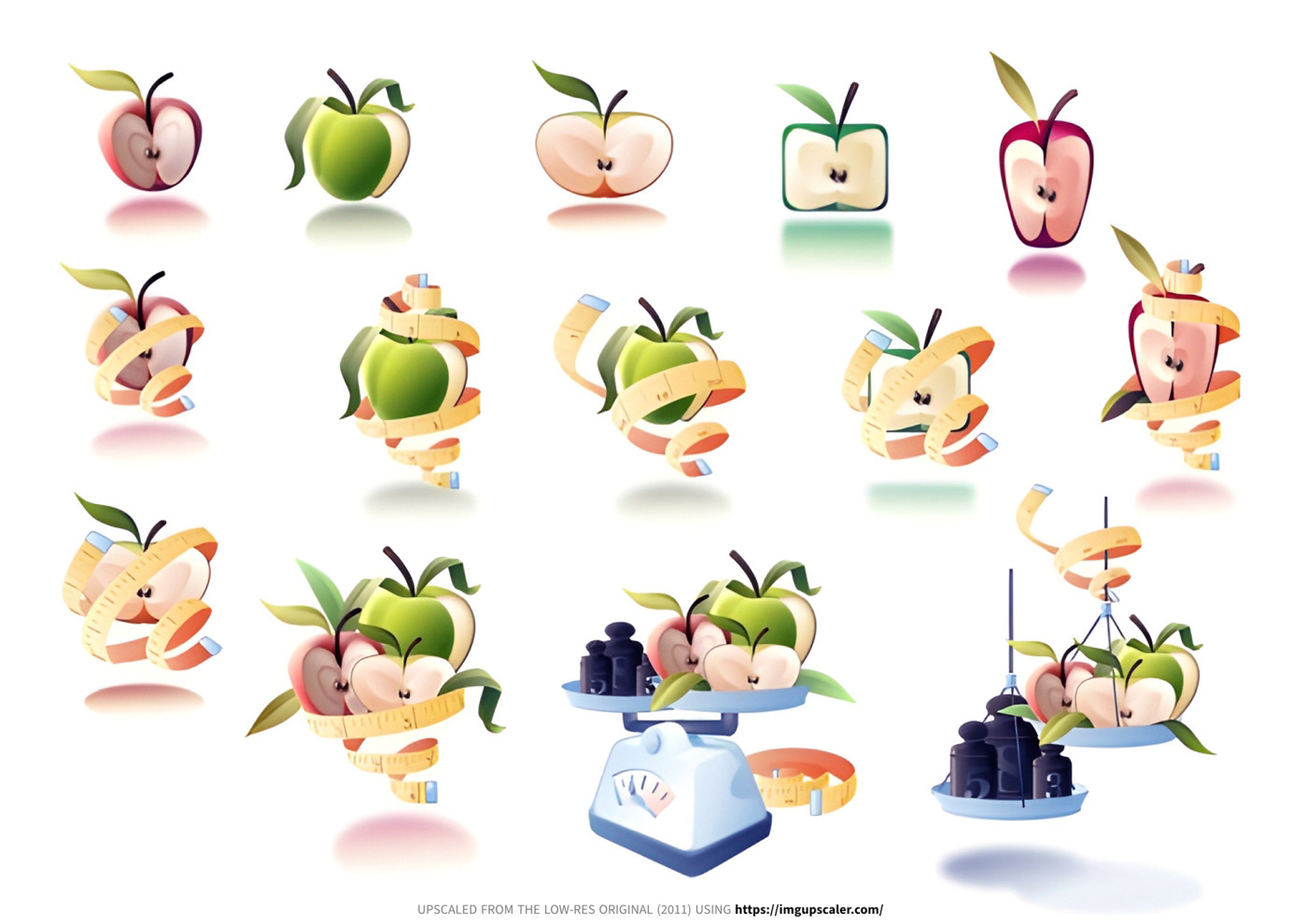 A collection of Inkscape-made 2D vector icons for a calorie-counter iPhone app by Nanobit (Croatia).